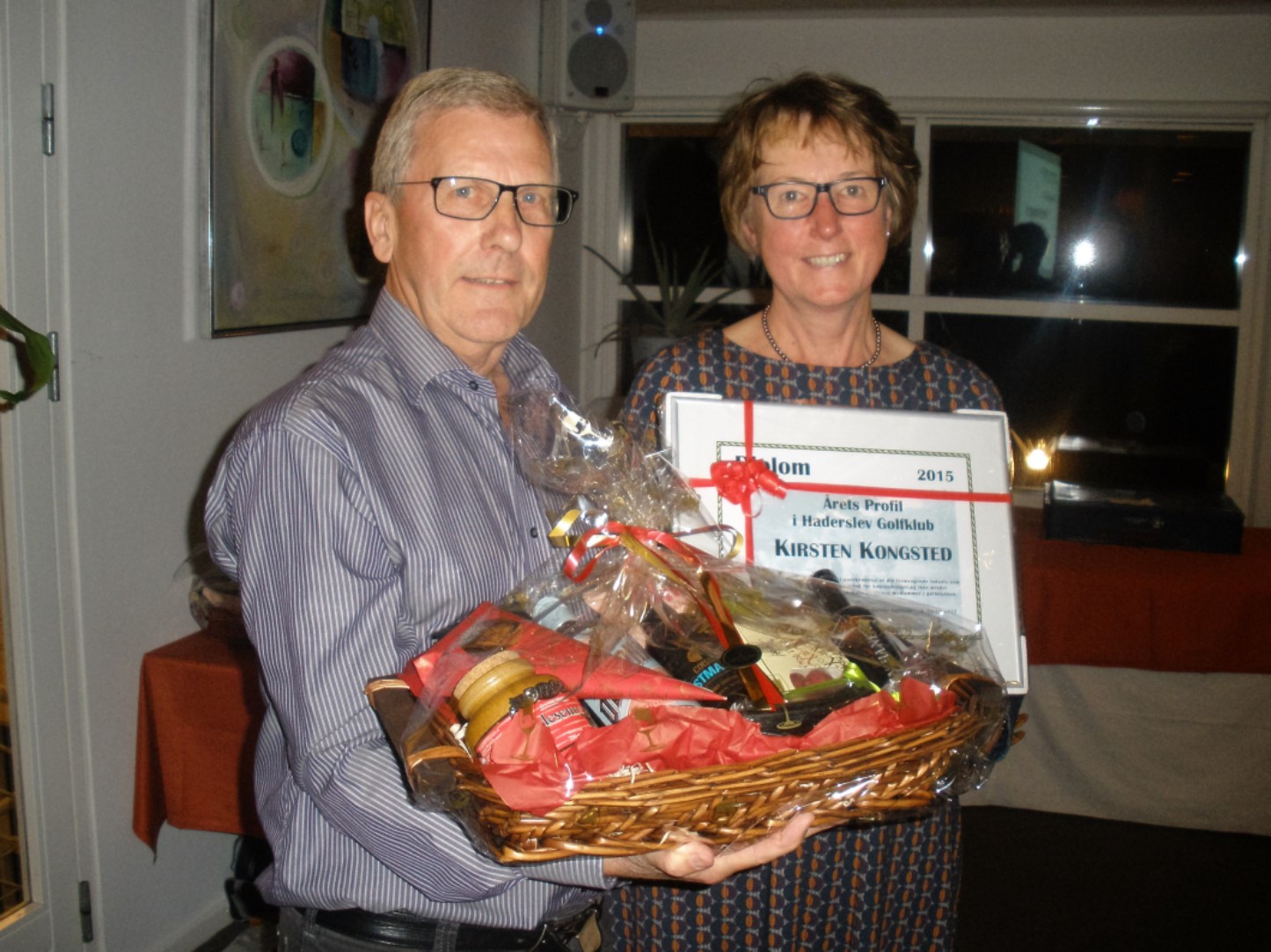 ”Årets profil i Haderslev Golfklub” i Haderslev Golfklub modtager ved prisoverrækkelsen et diplom samt en kurv.